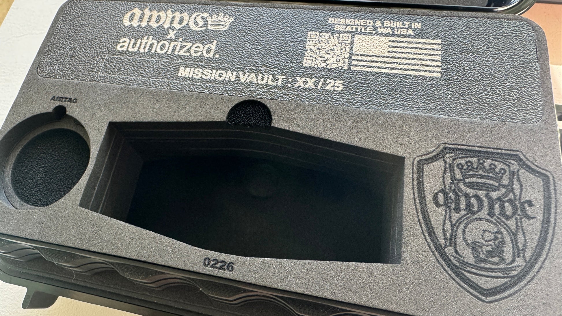 • Hidden AirTag compartment beneath the foam