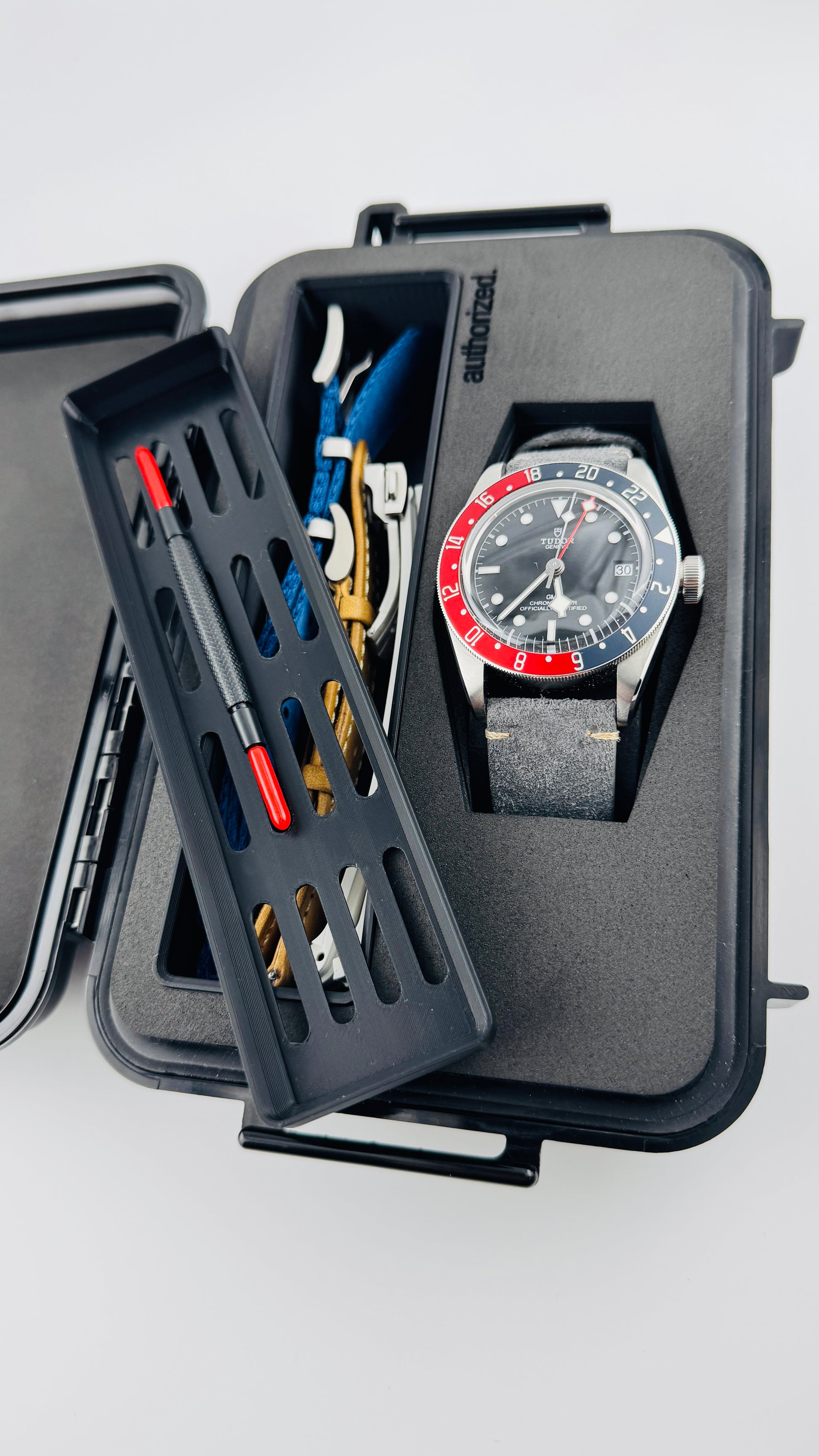 Vault One is the next evolution of minimalist watch travel, designed for enthusiasts who want a compact setup with real capability and organization. Built using the same Pelican case dimensions as the original Stealth Vaults, it delivers the dust-proof, water-proof, and crush-proof protection authorized. is known for, now with an all-new hybrid interior designed to keep everything watch-related in one place.