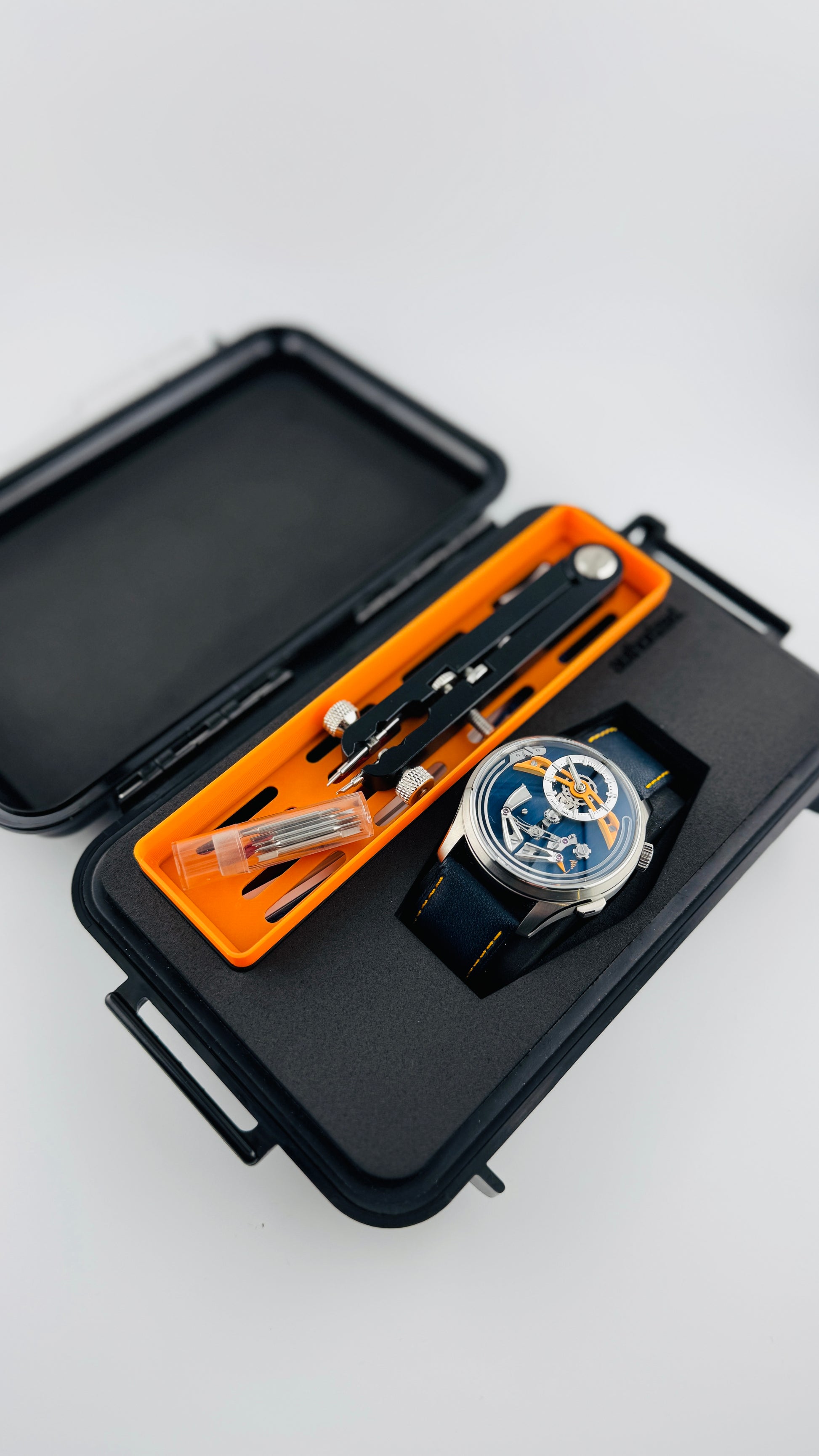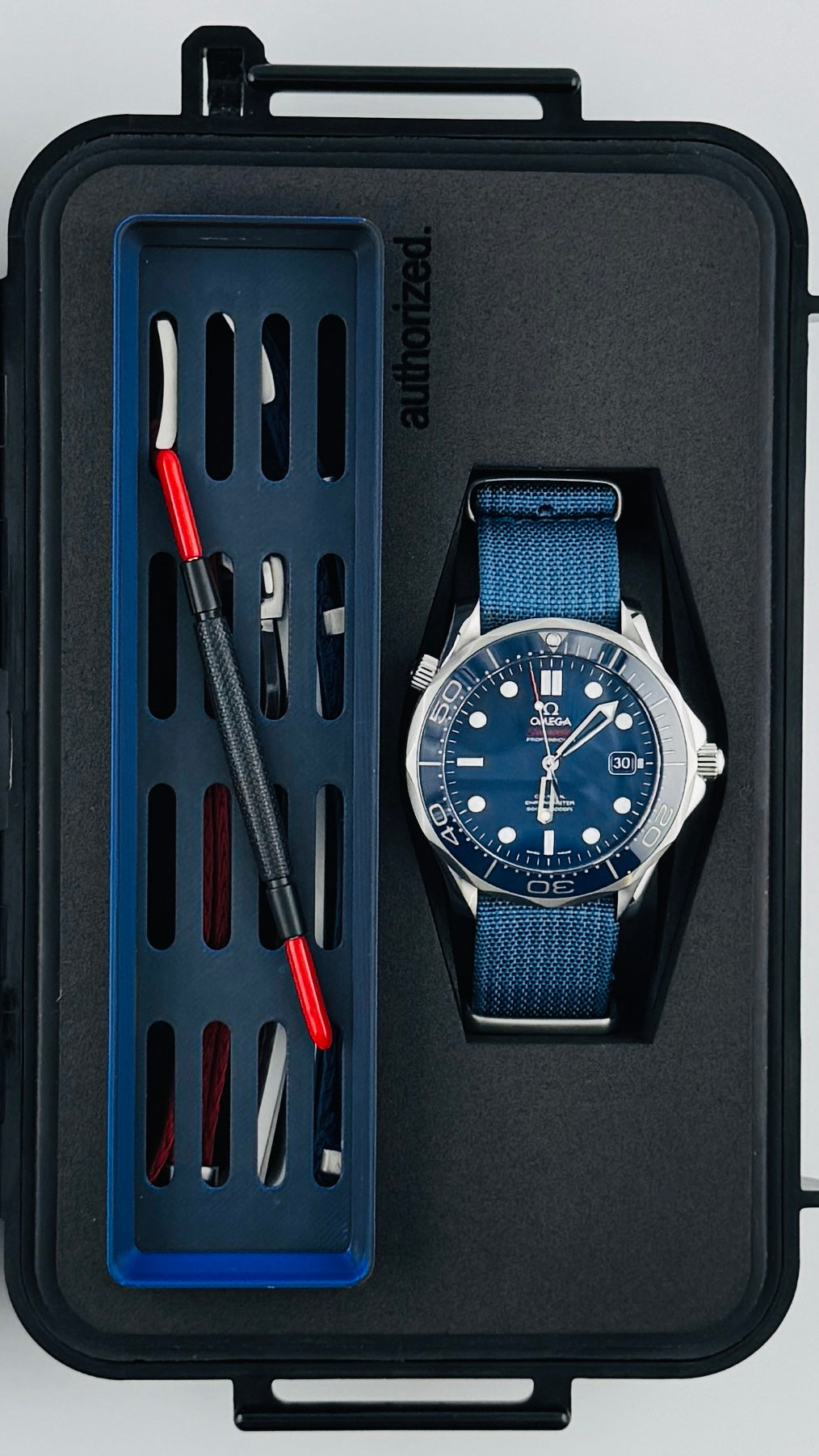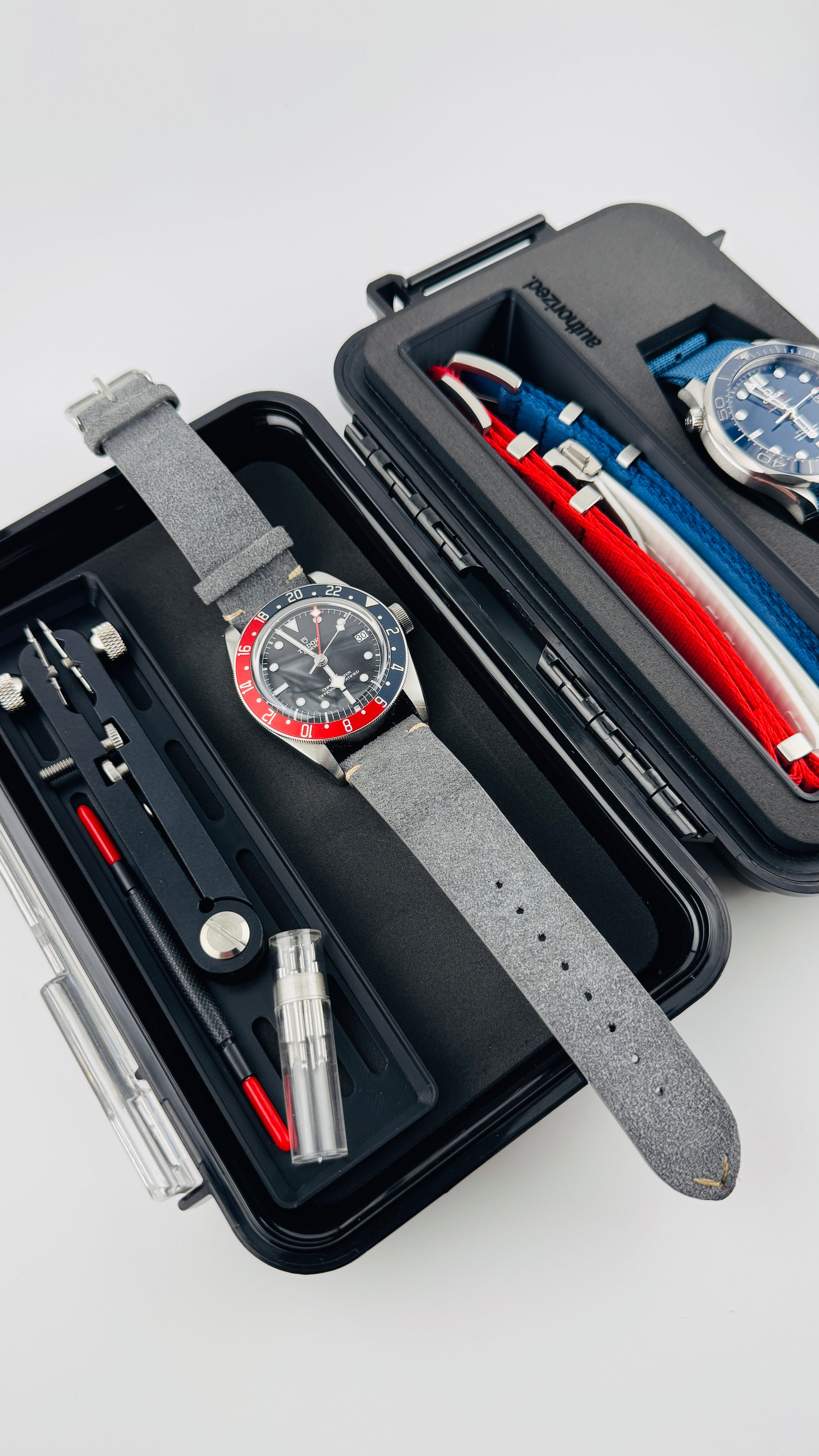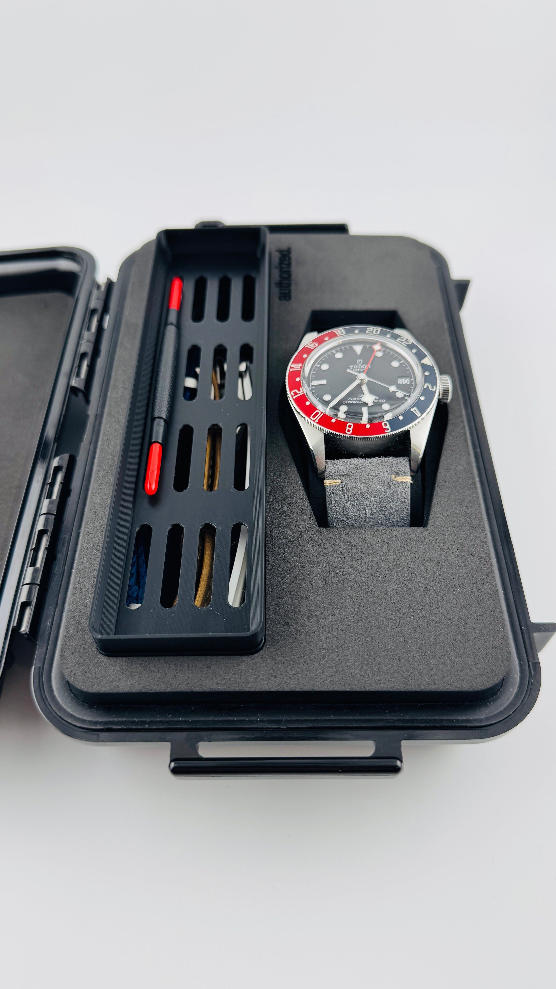 Vault One ships with the standard black tool tray, maintaining a clean and timeless look. Optional color trays can be purchased separately for those who want to add a personalized touch to their setup, whether it’s matching dial colors, strap tones, or building a cohesive travel theme.