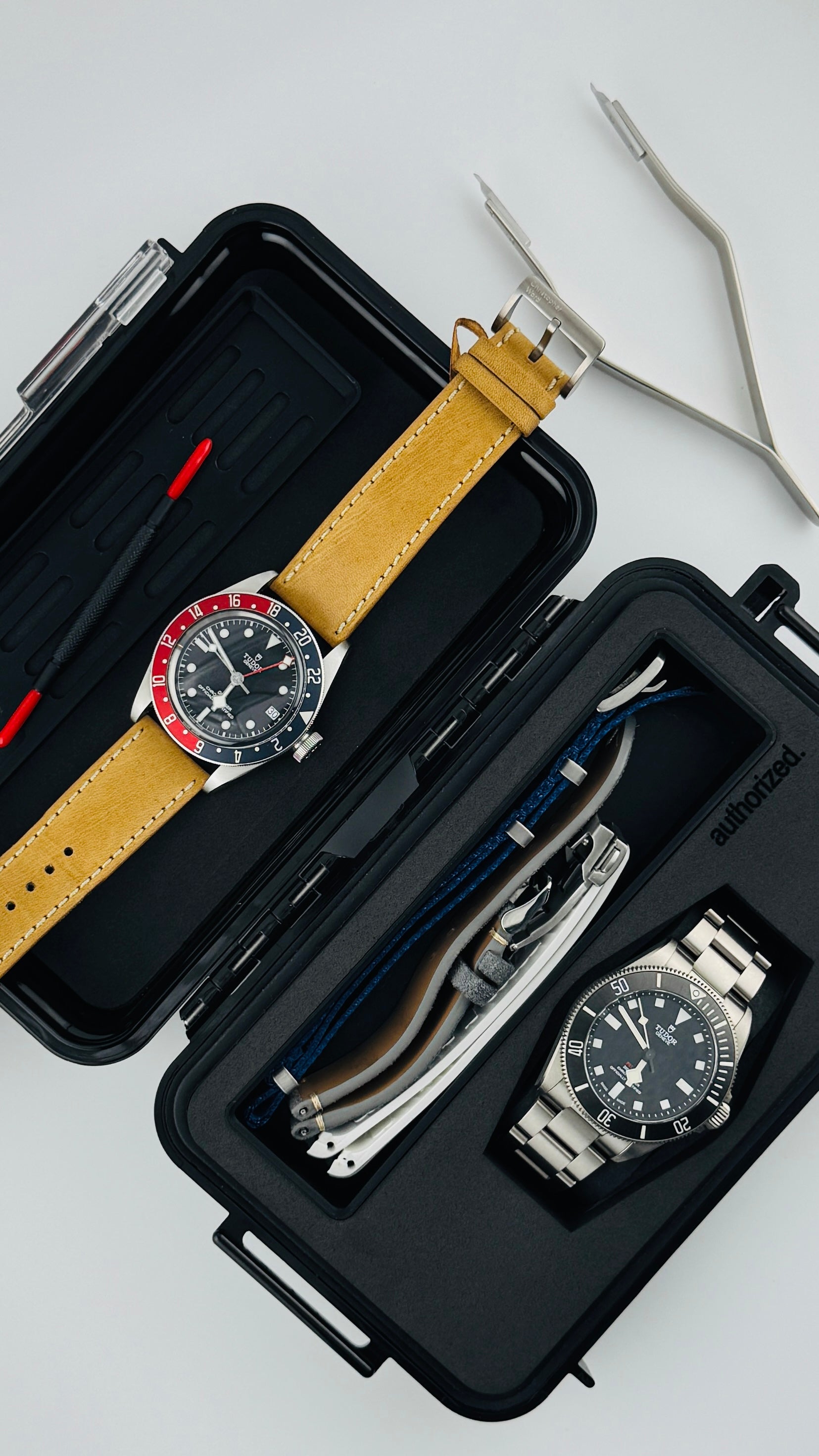 • Storage for multiple straps (NATO, rubber, leather, bracelet)